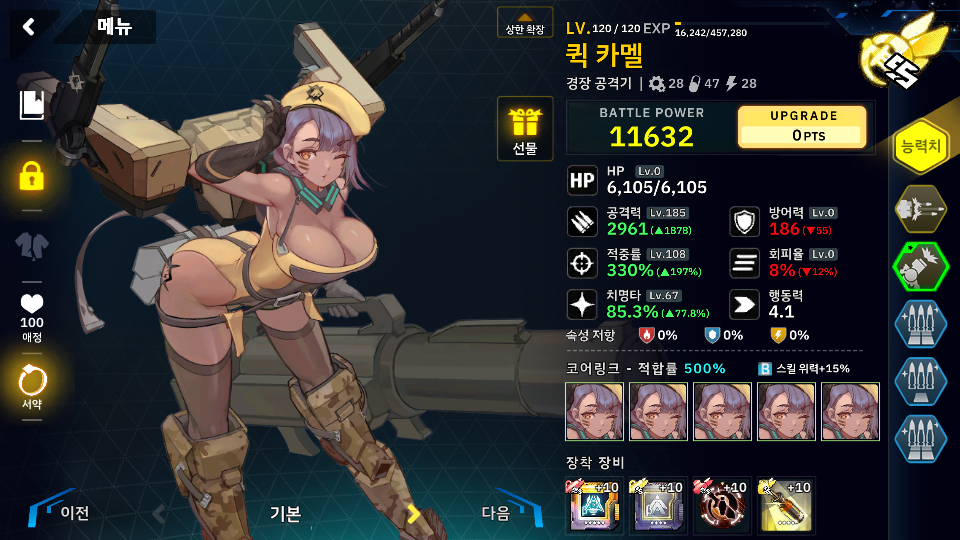 퀵 카멜에게 버프를 넣어주면 데미지가 미쳐 날뜁니다.