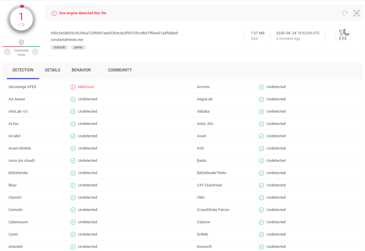 개인이다 보니 코드사인은 구입하기엔 힘드니 패스고 특히나 몰랐는데 단순히 코드사인을 구입해도 너무 데이터가 없으면 오진한다고 꾸준히 만들고 배포하고 체크하는게 중요한데 콘챠 친구를 처음 배포한게 작년 19년 3월이니 이 프로그램도 이제 1년하고 2달이 되다보니 백신에서 오진을 안하네요.
