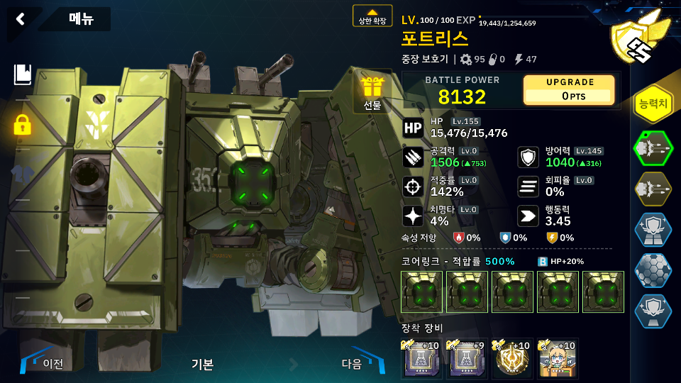 중장 보호기로 가야되는데 스카디와 와쳐가 워낙 좋은 유닛이 되었고 적의 보호 무시는 크게 걱정 안해도 되어서 놀고 있는 포트리스를 저는 넣어보았고 클리어 하는데 좋은 탱커 였습니다.