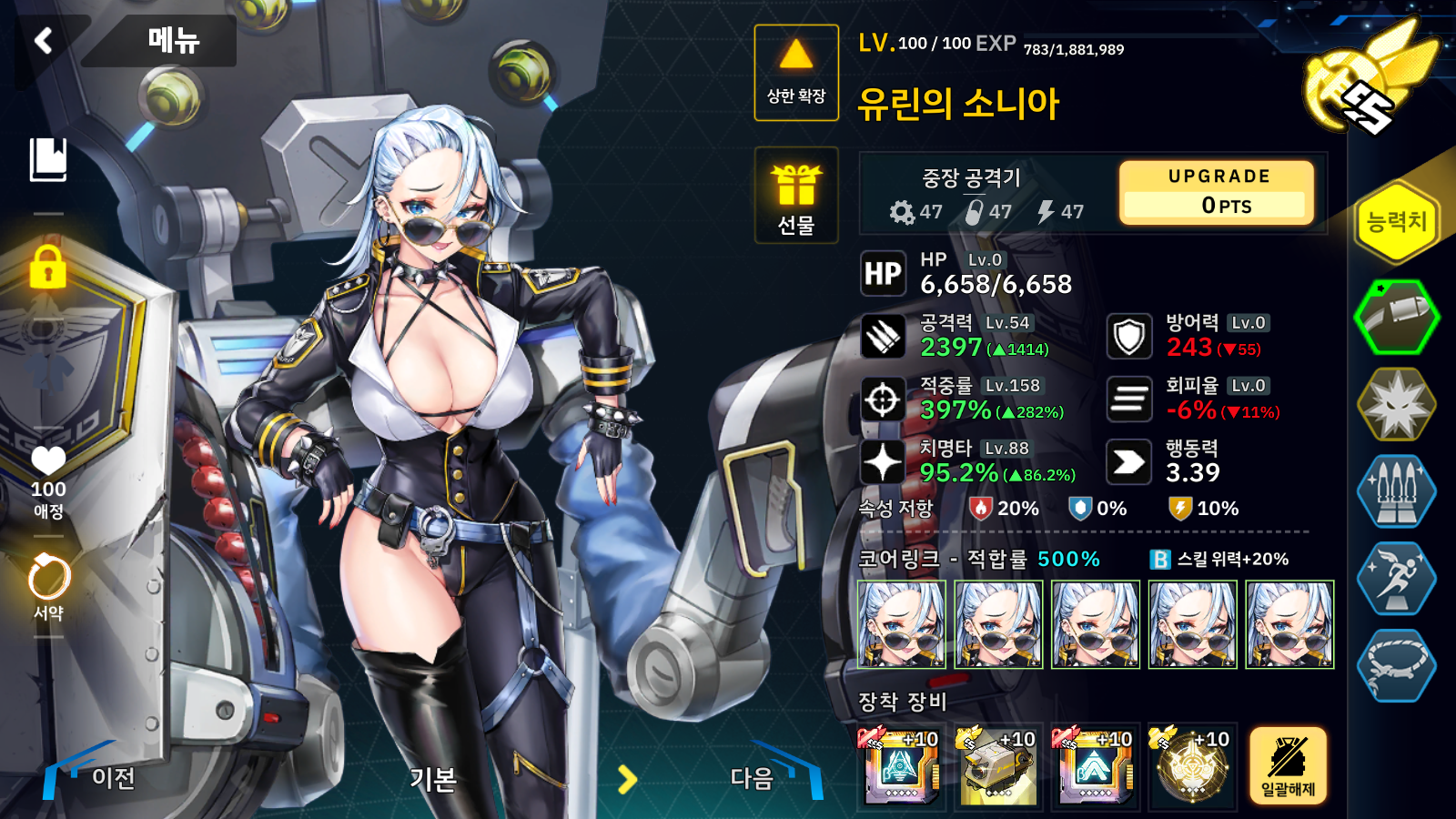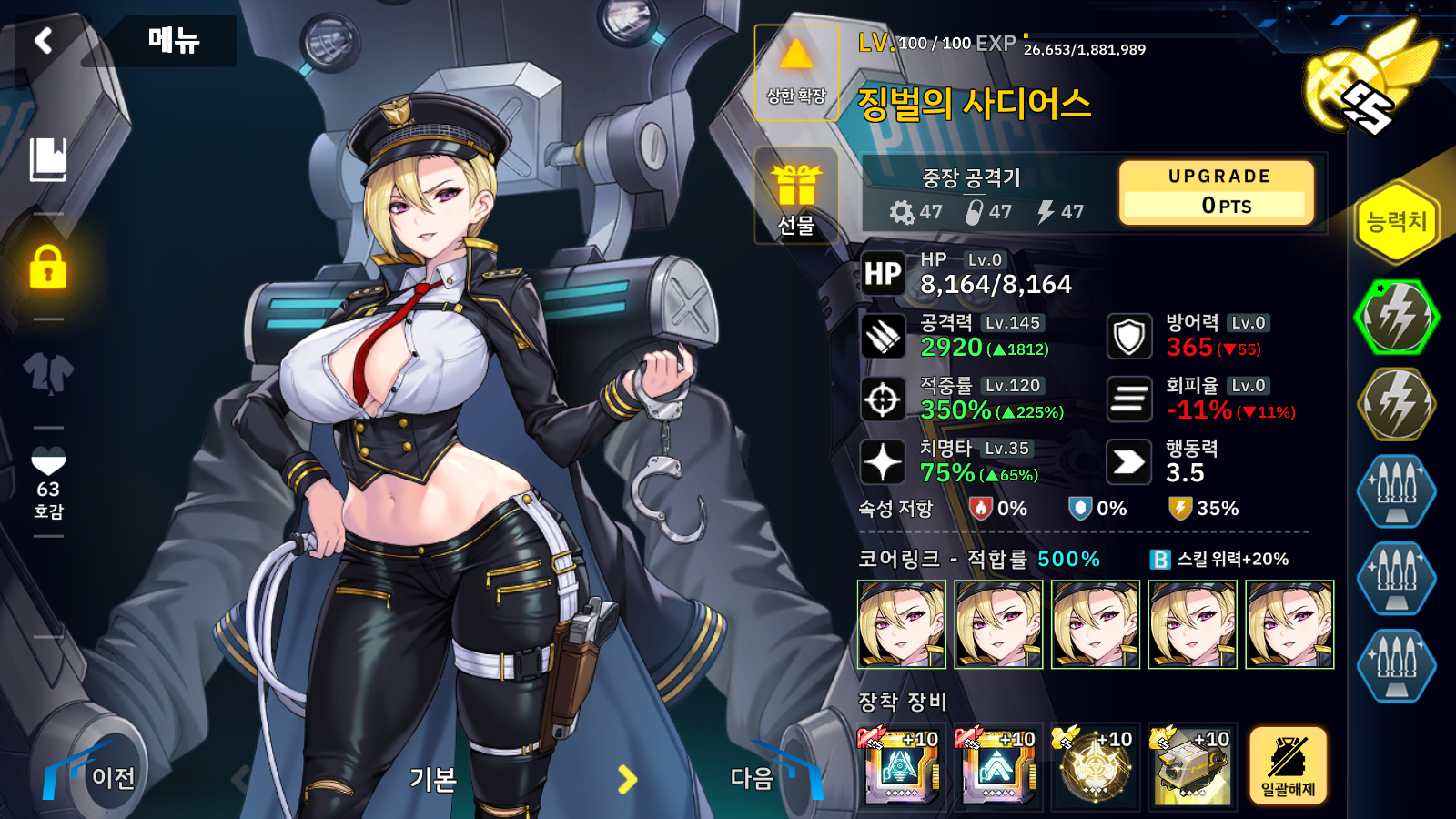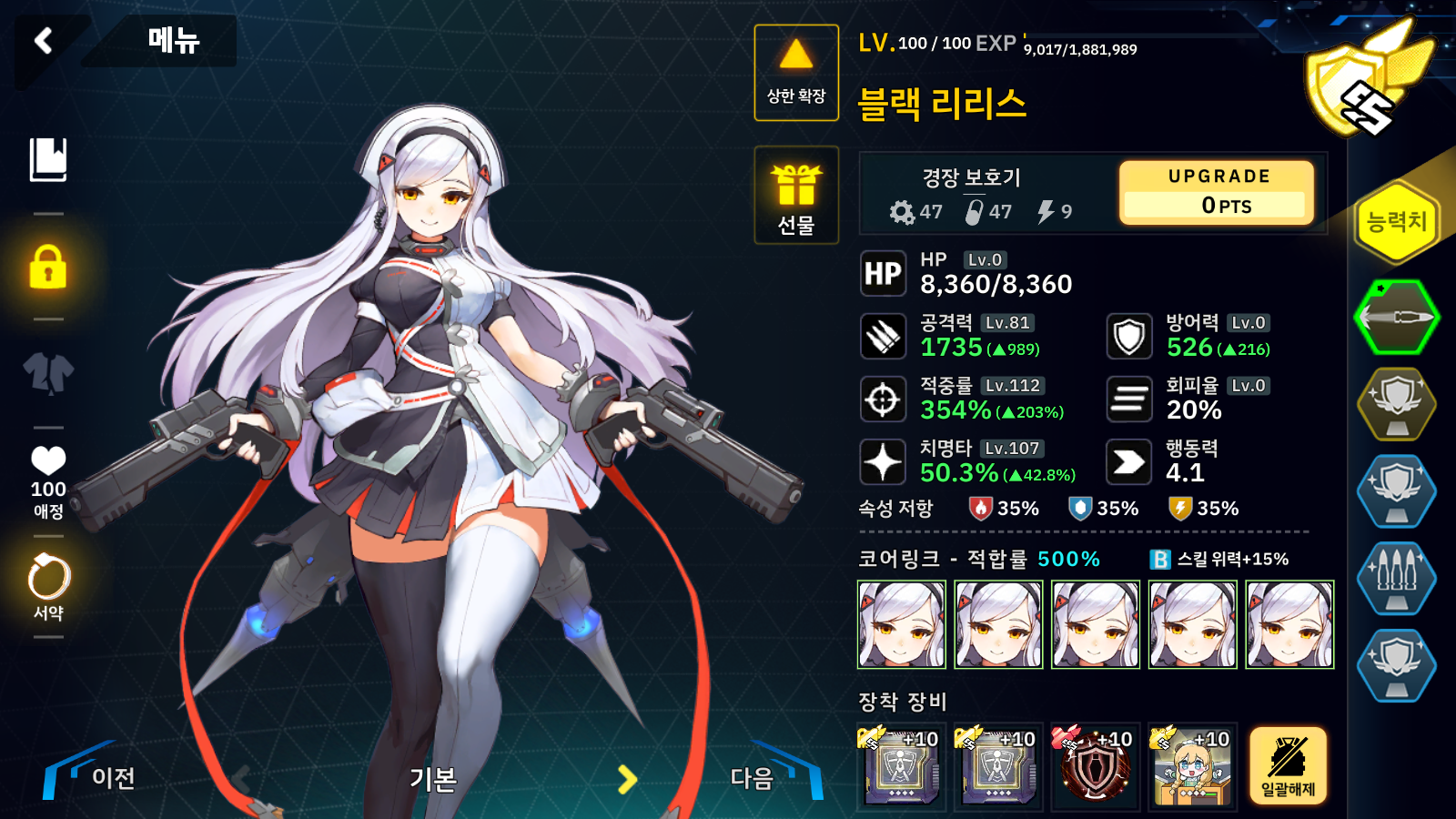 리리스는 공격 세팅인데 사실 탱킹으로 세팅하면 훨씬 편하며 2스로 리앤에게 계속 버프 걸어주고 나머지 3속성 딜러로 적들을 밀면 아주 쉽게 클리어가 가능합니다.