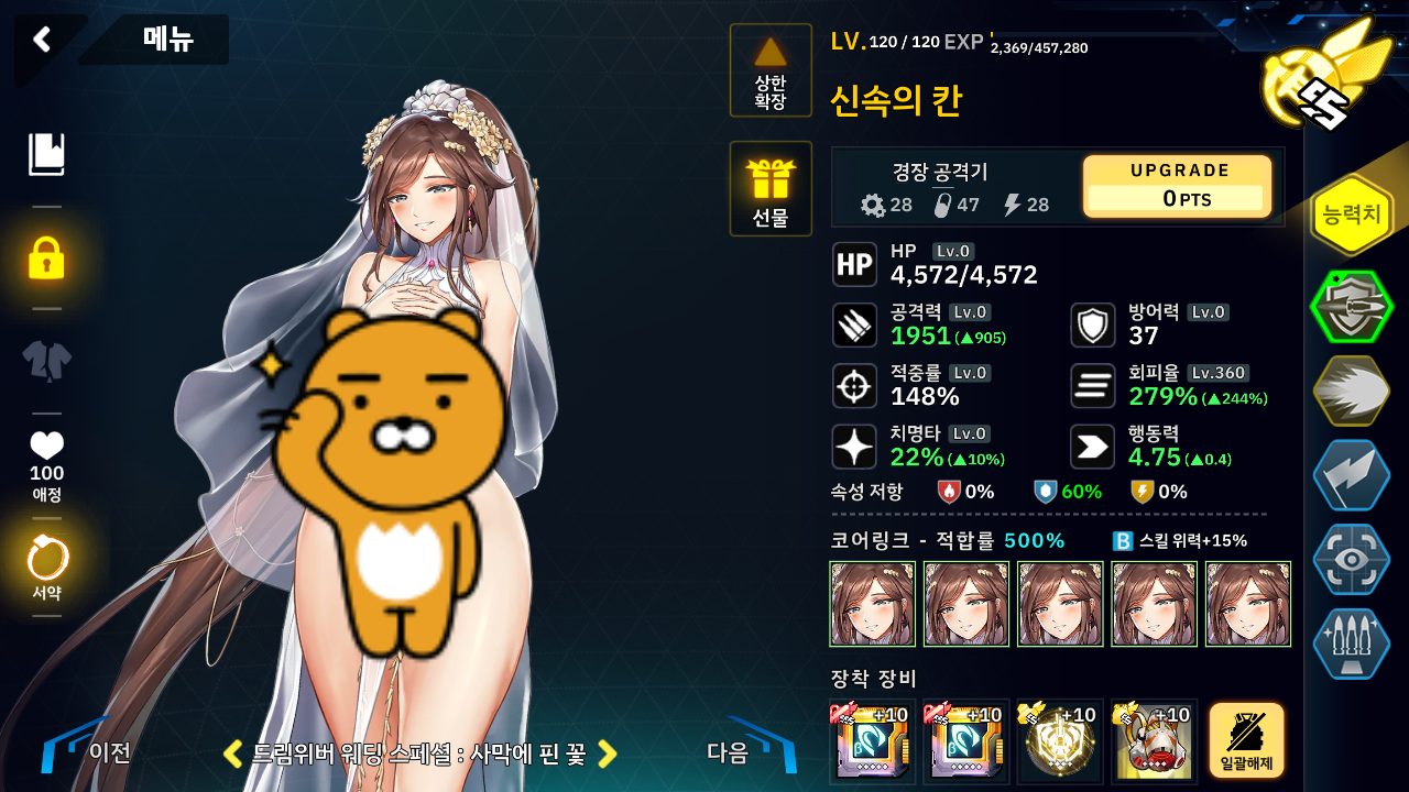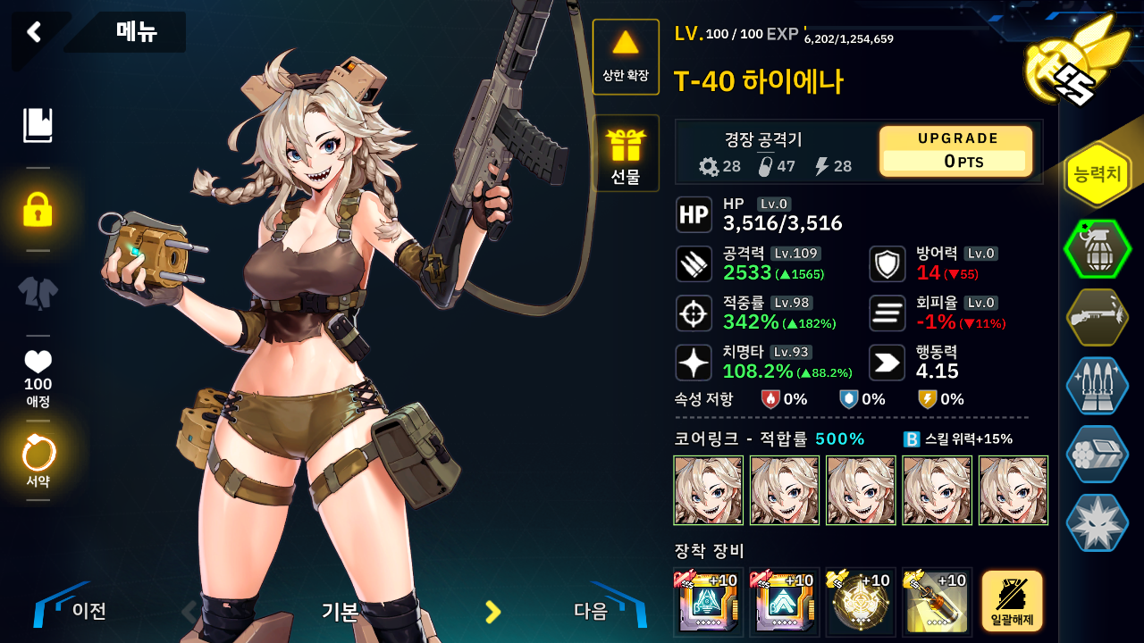 전투원 제한으로 앵거 오브 울프 풀 파티는 못 만들기 때문에 강화 해제 요원으로 오랜만에 매지컬 모모를 같이 데려갔습니다.