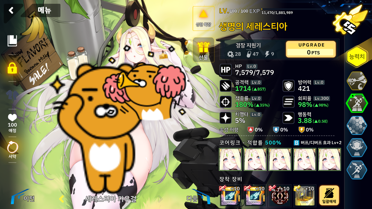 다만 하토르는 운영하기가 좀 어려운데 1회 대기해서 폼 체인지를 한 후 세레스티아 2스를 받아야 됩니다.