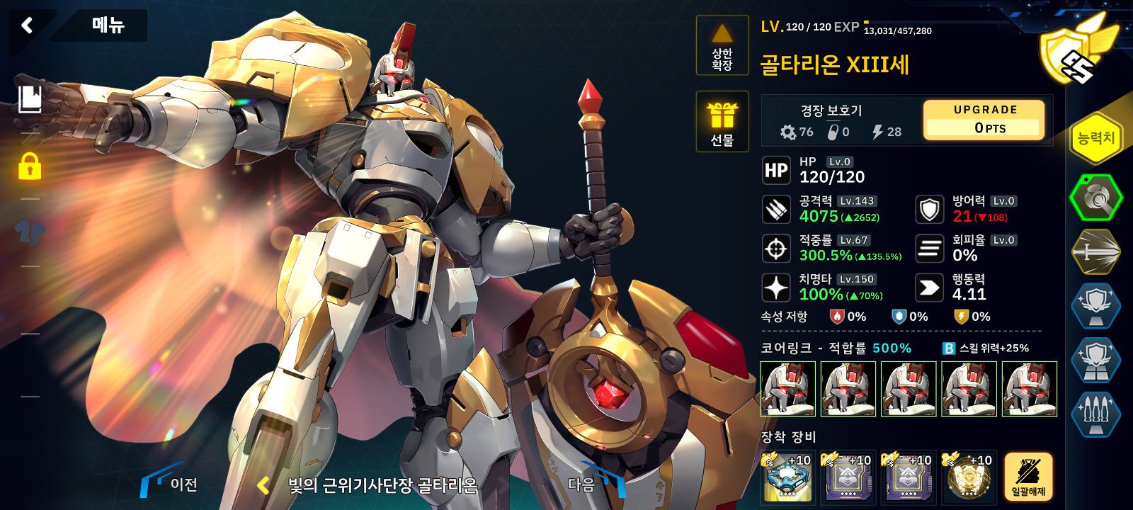 그래서 반격 해제를 가진 티에치엔과 타치를 넣었고 골타리온은 무적의 탱커이자 딜러며 나머지는 계속 대기하면 됩니다.