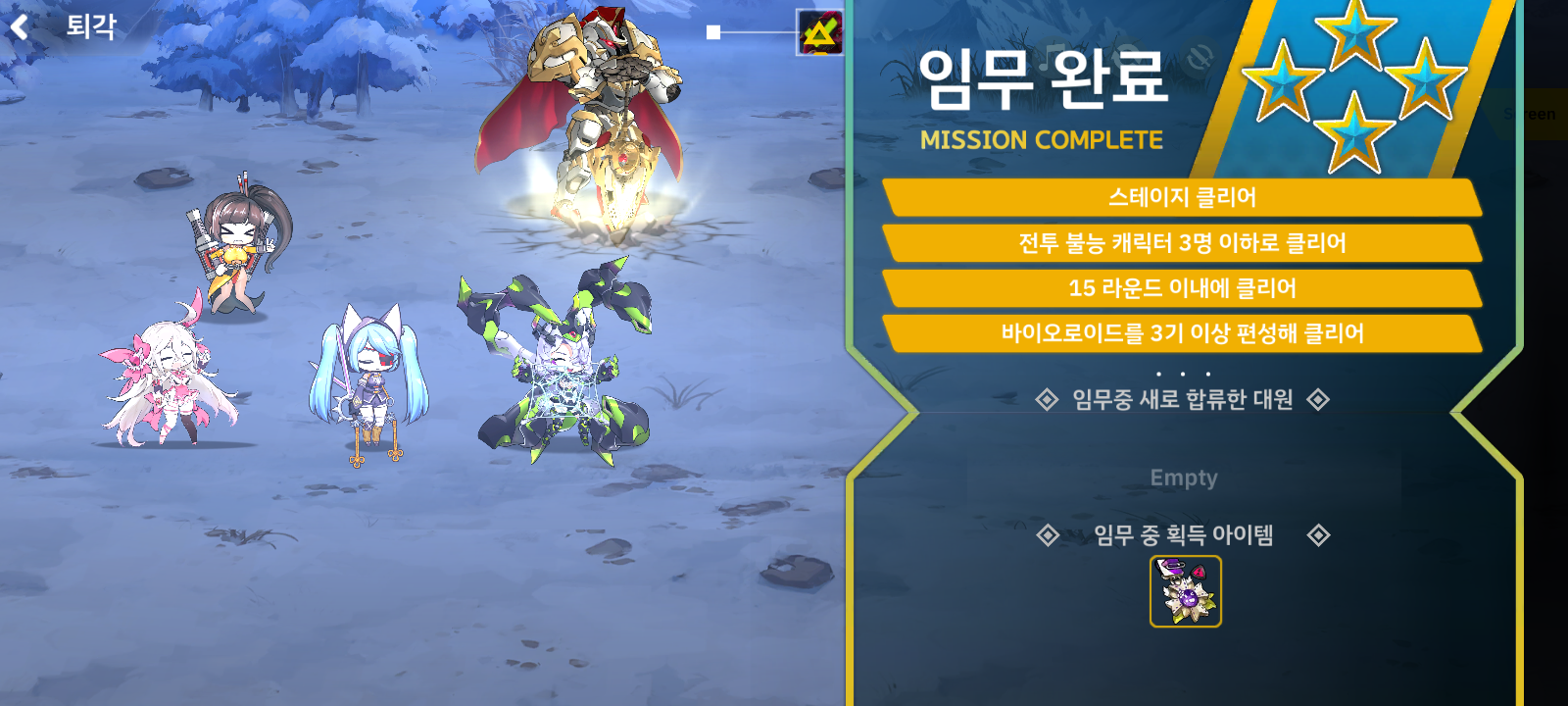 바로 대중장 넣으니 15라운드에서 클리어 했습니다.